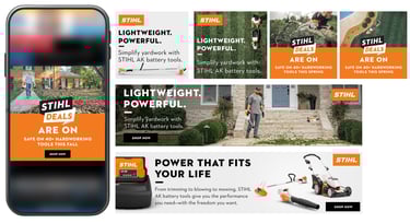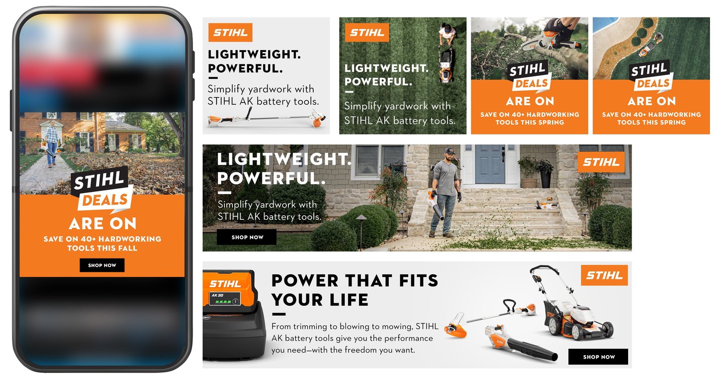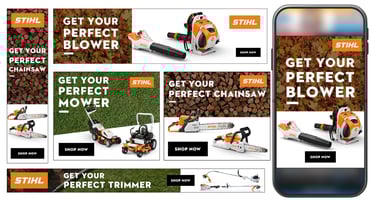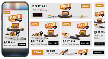 I developed more than 500 display ads for STIHL, Paducah KY, Festool and several other brands helping boost brand visibility and customer engagement across digital channels. The campaigns drove notable increases in website traffic and revenue, reinforcing STIHL’s strong online presence and sales growth.